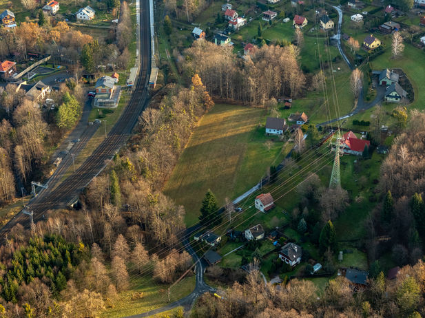 Pozemek je z poloviny rovinný a z poloviny mírně svažitý. Je možnost napojení na základní inženýrské sítě - voda a elektřina. Inženýrské sítě jsou na hranici pozemku. Pozemek je přímo přístupný z veřejné komunikace. Příjezdová cesta je celoročně sjízdná pro osobní vozidla. Kvalita pohledových horizontů je výborná. V docházkové vzdálenosti je k dispozici základní občanská vybavenost - základní škola, sít obchodů a služeb, hřiště, atd.. V obci je zastávka autobusu a také zastávka vlaková, která je 50m od pozemku. Nebojte, elektrifikované vlaky dojíždějící do zastávky nejde přes lesní porost téměř slyšet. Přijďte se sami přesvědčit. Tato lokalita je velmi žádaná pro rodinné bydlení.
